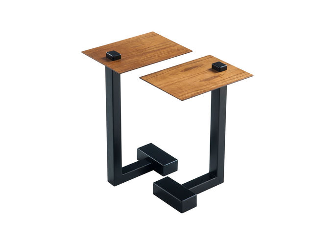 Clear and minimal lines. As a side table, it convinces by its versatile and functional design, allowing its use together or separately. Structured wooden base. The top stands out for the thin edge of a mere 5 mm, which gives the impression of softness. Less allows the extra convenience of enabling the table top to be slid over the sofa, giving easy access to objects placed on it.