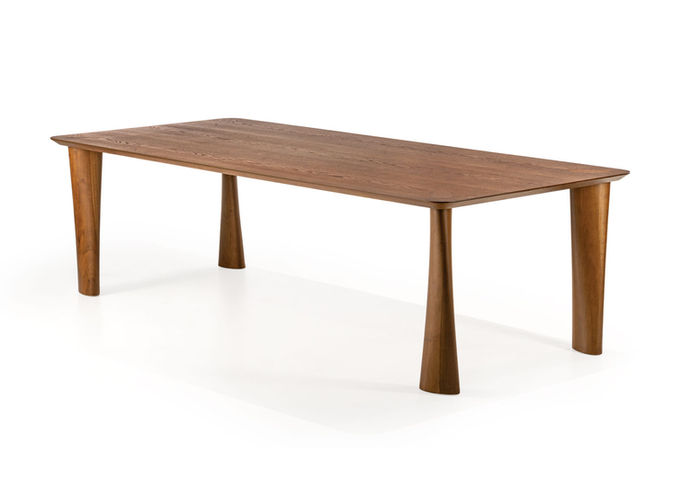 A mesa de jantar Torna dá continuidade à linha que destaca o pé torcido, esculpido em torno, onde a madeira ganha movimento e parece girar sobre si mesma. Sua presença é sólida e fluida ao mesmo tempo, reforçando a habilidade da MSUL em dominar a madeira em diferentes formas e escalas. Uma peça que combina técnica, volume e leveza visual.